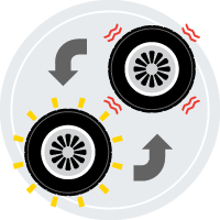 An illustration of a tire bracketed by curved double-sided arrows.