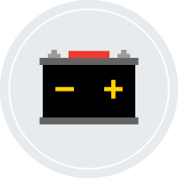 An illustration of a battery with positive and negative icons.